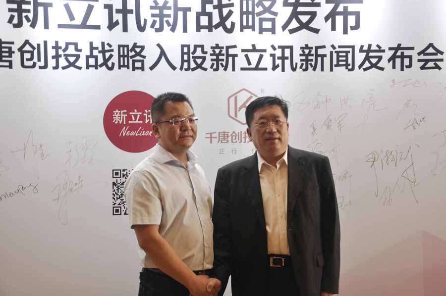 2016年7月18日,千唐創投與新立訊在上海浦東麗思卡爾頓酒店簽署戰略合作協議,千唐創投宣布正式入股新立訊,以資本助力中國智慧經濟的發展。參加發布會的嘉賓包括南京新立訊科技股份有限公司創始人兼董事長毛霖先生、千唐創投CEO尹千林先生、中國(南京)軟件谷管委會、南京市雨花臺區金融辦、中國(南京)軟件谷資產管理公司以及來自中國優通集團、風華教育基金會、新立訊保薦單位國聯證券、萬隆評估、TFI天開國際集團、重慶奧研醫藥、車城網和貴州和云信息等公司的領導和數十位專業投資機構負責人出席了本次發布會。
