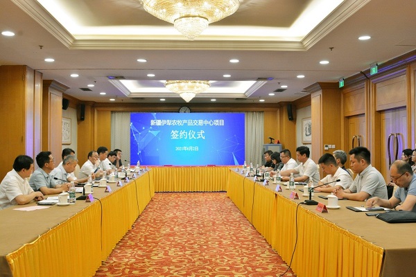 2021年6月2日,新立訊股份與伊寧市人民政府在江蘇南京西康賓館隆重舉行簽約儀式,雙方就新疆伊犁農(nóng)牧產(chǎn)品交易中心項目現(xiàn)場簽約。伊犁州黨委副書記、自治州代州長哈丹·卡賓,伊犁州黨委副書記、江蘇援伊前方指揮部黨委書記、總指揮朱斌,伊犁州黨委常委、州紀(jì)委書記、監(jiān)委主任丁邦文,伊寧市委副書記、市長卡米力江·玉蘇甫江,中國(南京)軟件谷管委會主任孫中華與江蘇省、南京援疆工作組、南京市發(fā)改委等相關(guān)領(lǐng)導(dǎo),新立訊董事長毛霖及公司高管余治、李偉、陳凱等共同出席簽約儀式。伊寧市委副書記、南京援疆工作組組長鄭曉明主持。