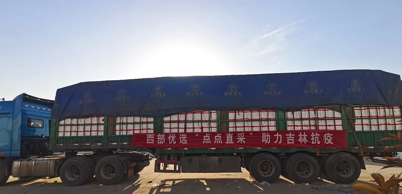 西部優(yōu)選“點點直采”為吉林抗疫保供物資提供集采服務。2022年4月15日,兩輛滿載2萬份蔬菜包的保供物資從山東發(fā)車,前往吉林長春市。
